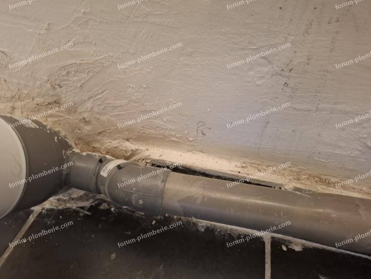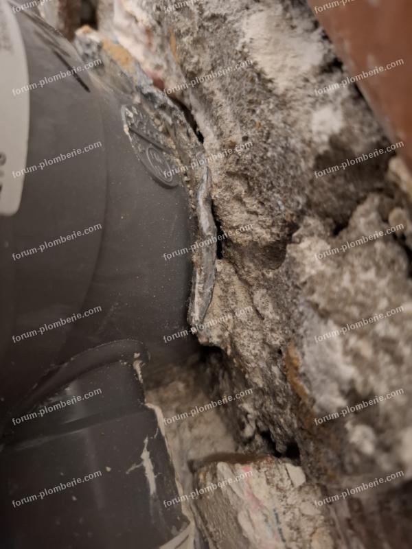 Malheureusement, il ne sort que légèrement du mur et de manière inégale, ce qui ne me permet pas l'utilisation d'un manchon de raccord avec collier de serrage.